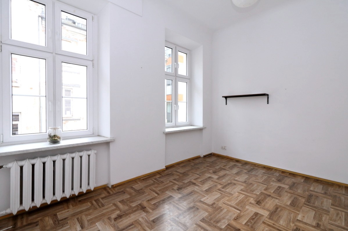 This 65.70 m² unit is located on the second floor of a pre-war tenement building in a prime location, near the shopping center and the Wileńska metro station.