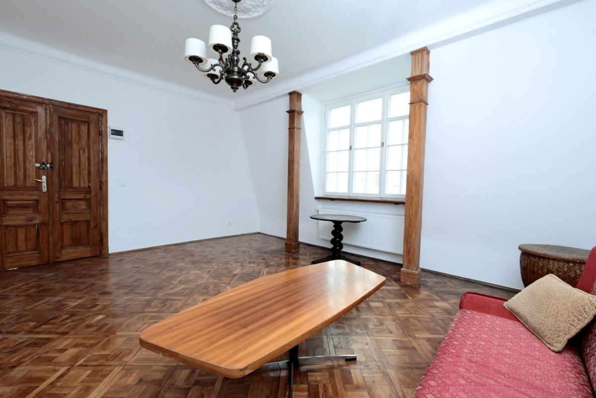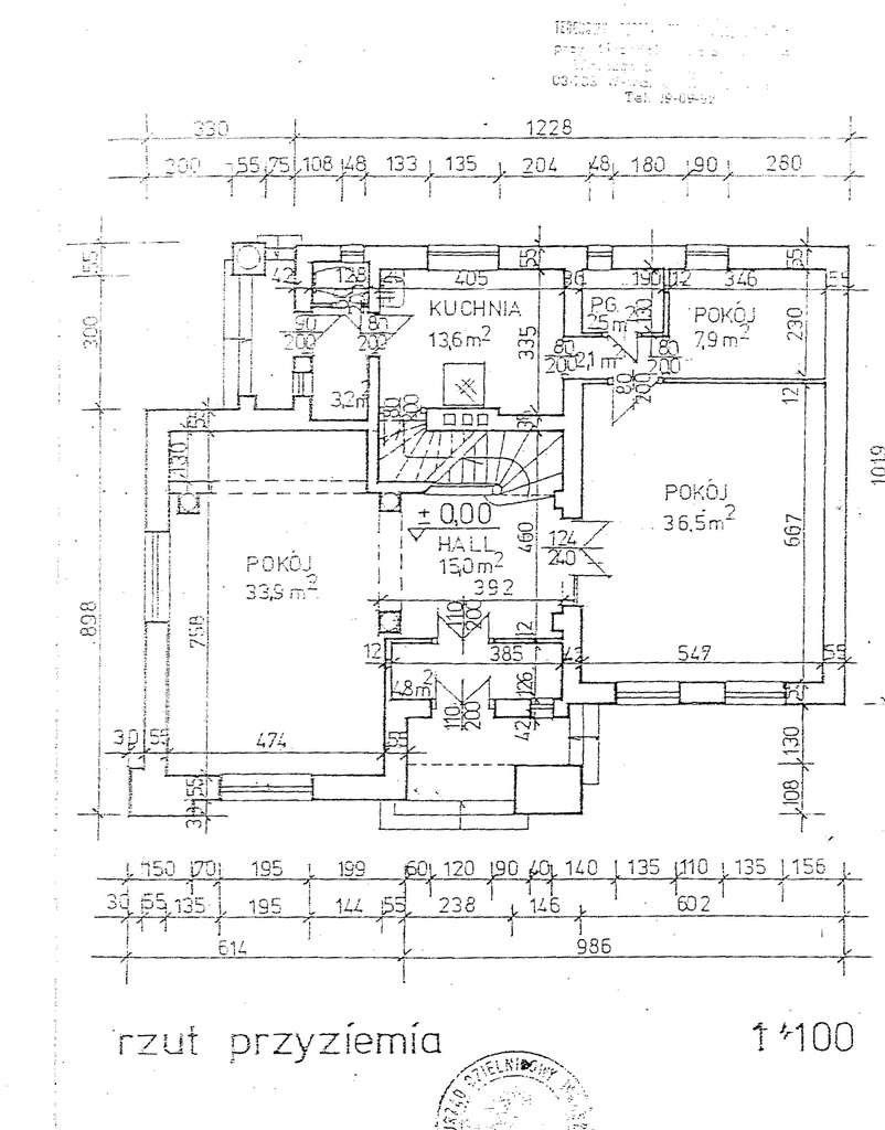 Parter - ok.120 m2 (wysokość - 3,80m): reprezentacyjny hol 15m2 m2, salon - 33,9 m2, pokój - 36,6 m2, widna kuchnia-7,9m2, wc- 2,5m2 oraz samodzielna kawalerka ok 17m2