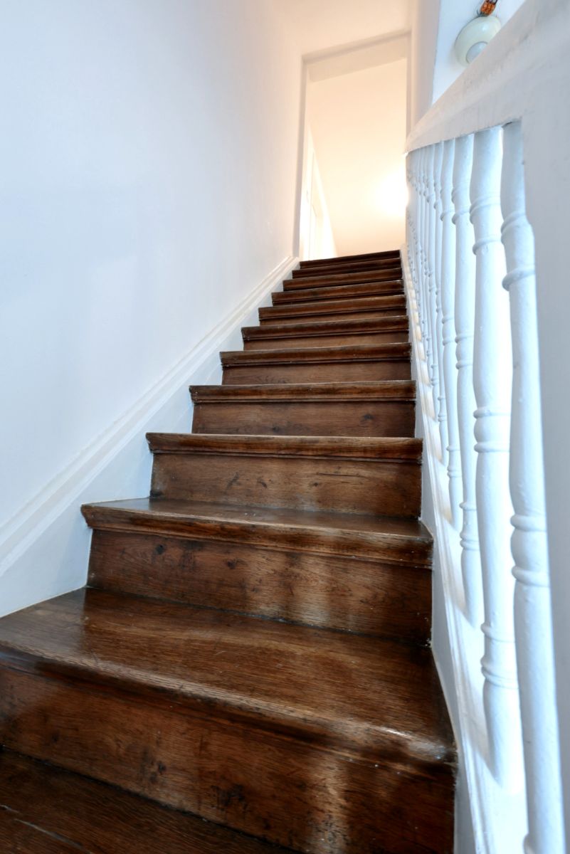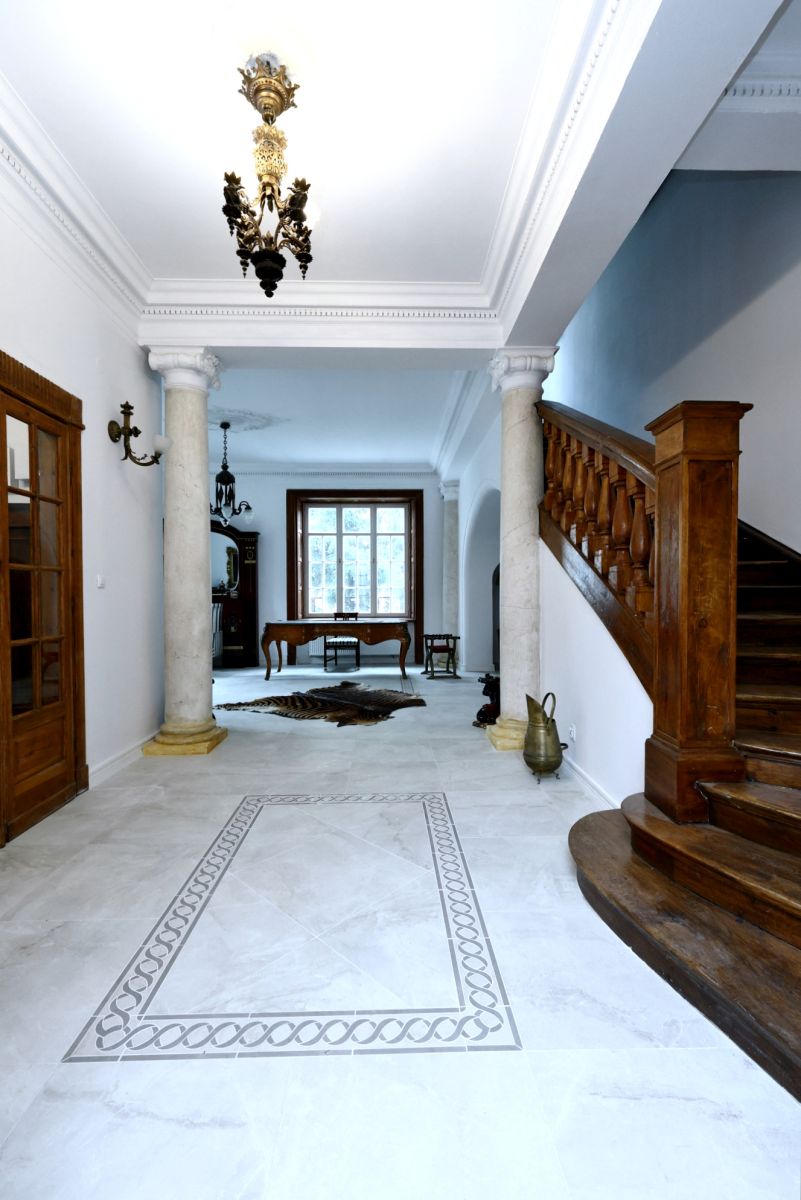 Zabytkowa klatka schodowa łącząca parter, piętro i poddasze