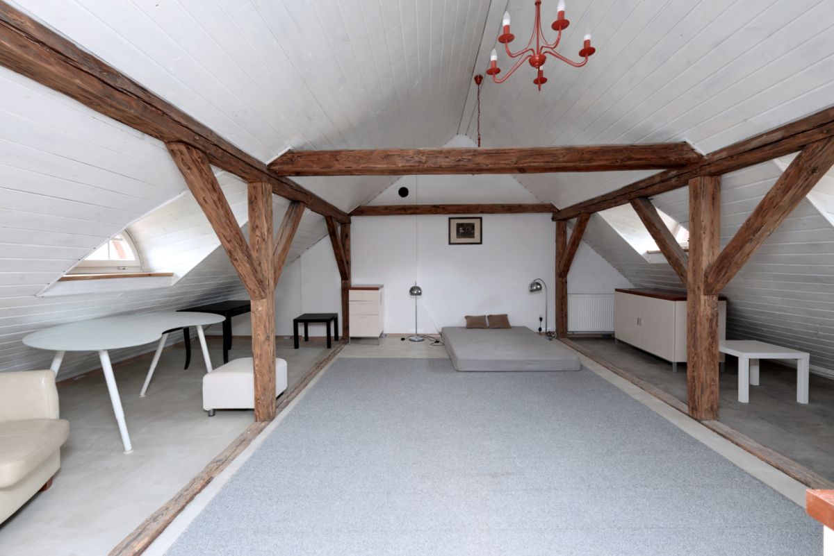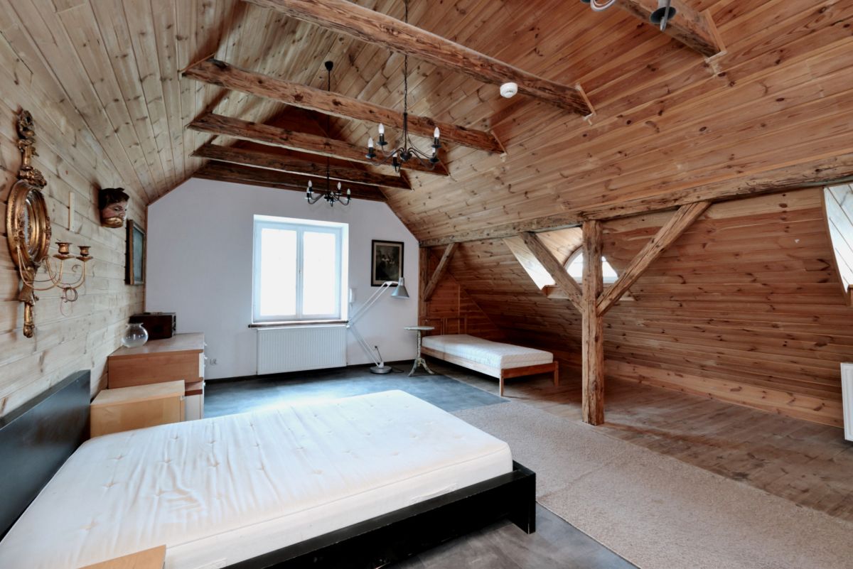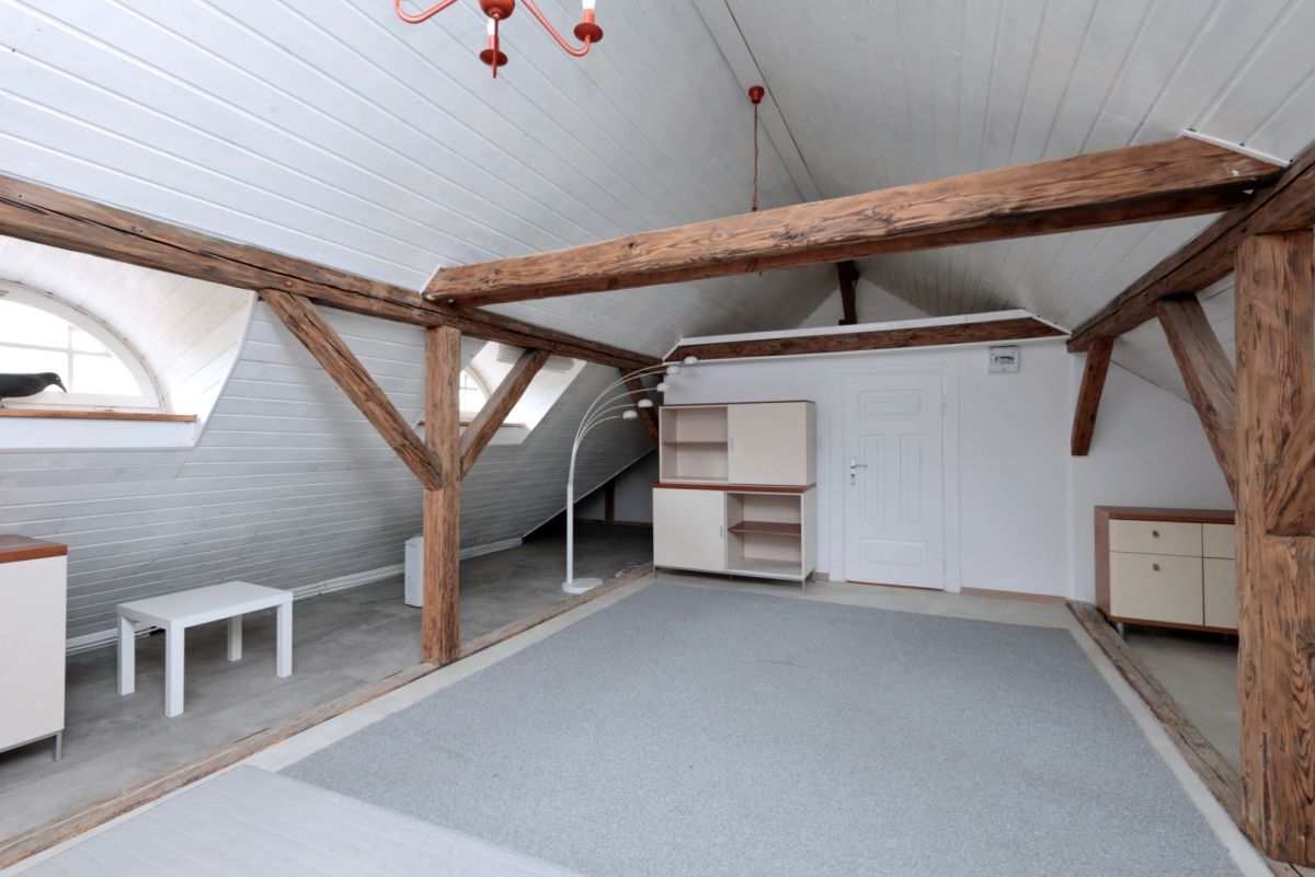 Attic - approx. 100 m² (height at the gable - approx. 3.20 m) - two separate rooms with sloped ceilings and a hall with a kitchenette.