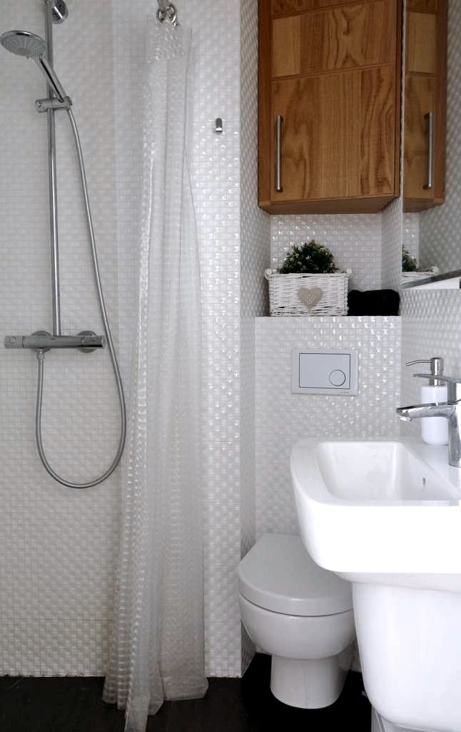 Łazienka razem z wc, otwarty prysznic.
