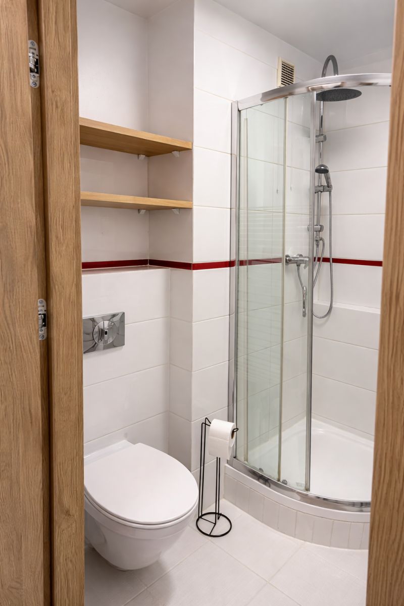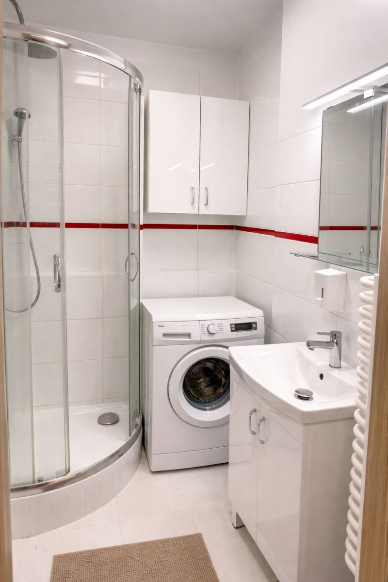 Łazienka: Wyposażona w nowoczesny prysznic.
