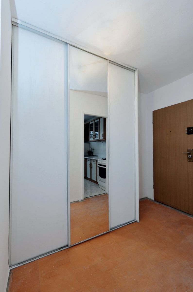 Przedpokój przestronny z miejscem na dużą szafę wnękową.