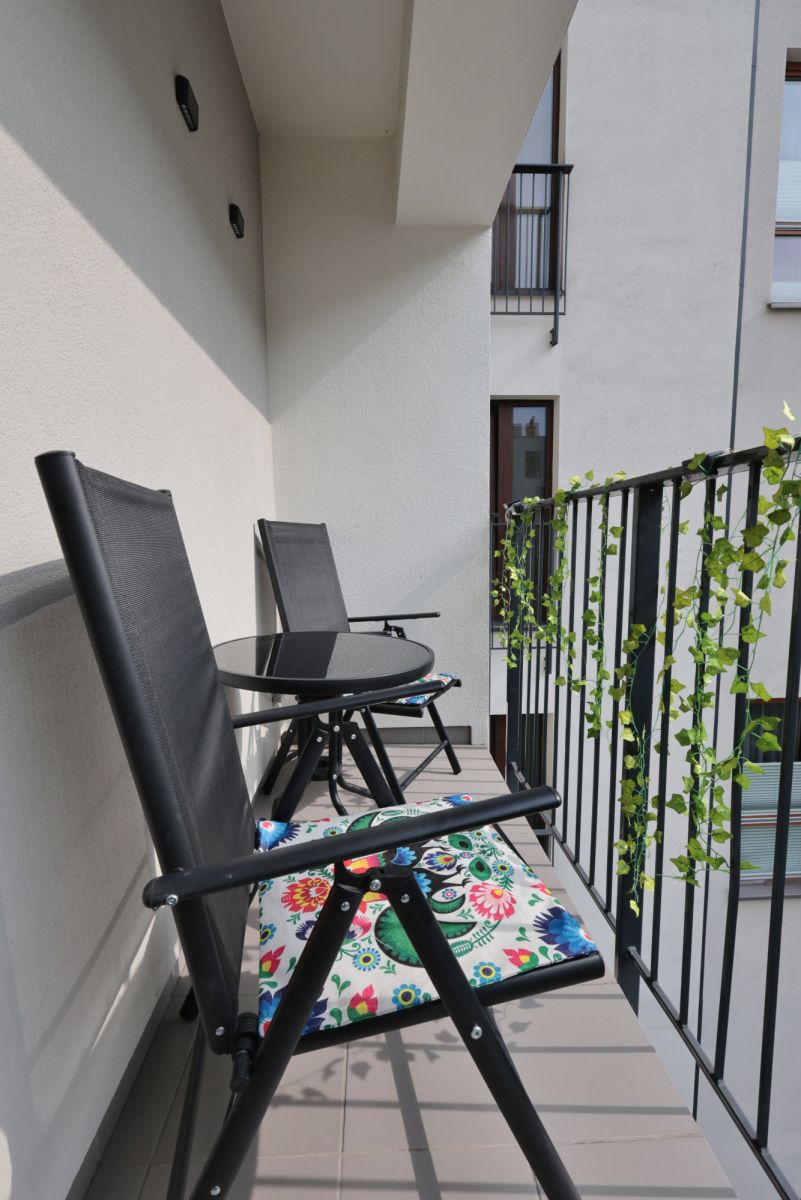 Dodatkowym atutem tego mikroapartamentu jest przestronny, balkon 3m2 położony od cichej, kameralnej strony zabudowy z widokiem na zielone patio.